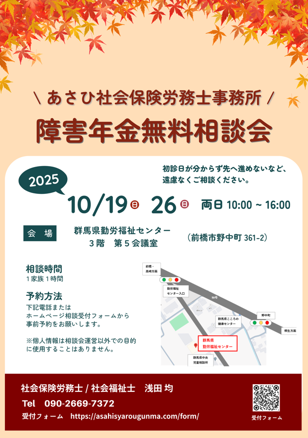 10月19日(日)、26日(日)の10時~16時まで無料相談会を開催します。